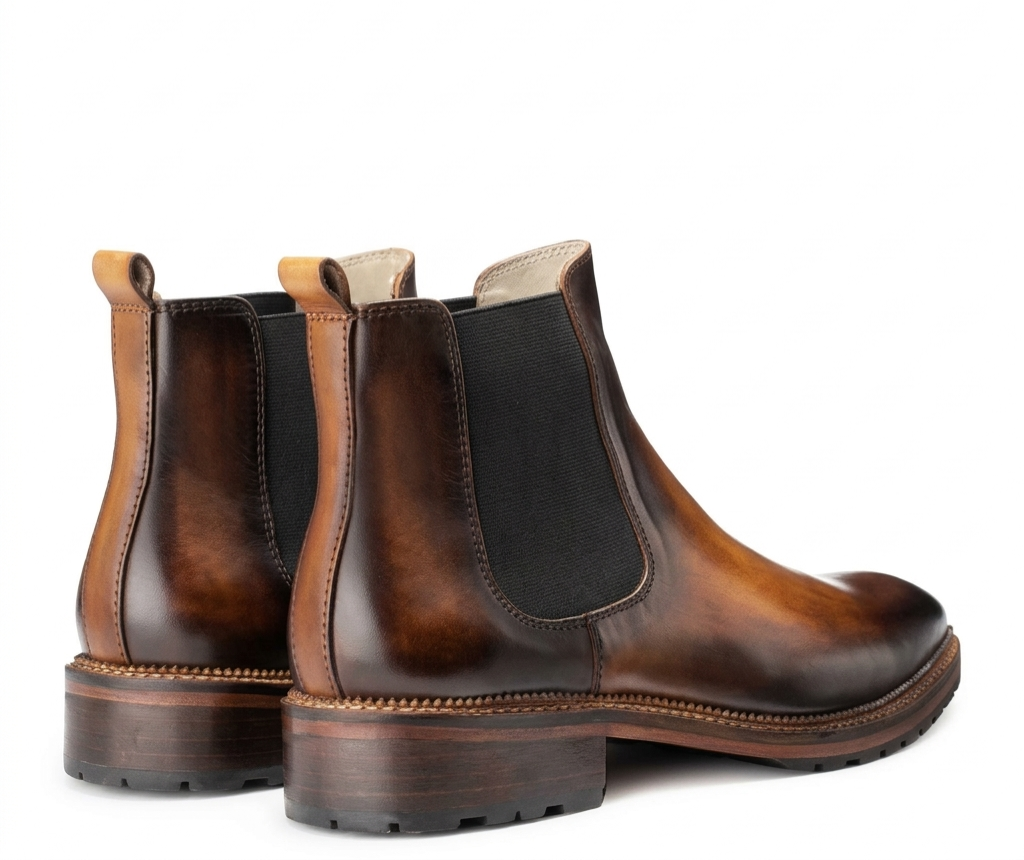 The S&B Italian Burnished Brown Leather Chelsea Boot is crafted for men who appreciate refined craftsmanship and timeless style. Designed with a sleek, confident silhouette, this boot features a beautifully hand-painted burnished brown leather finish that gives each pair a unique depth of color and character.